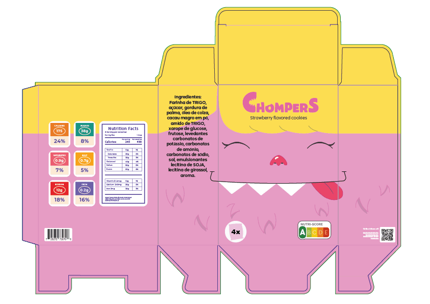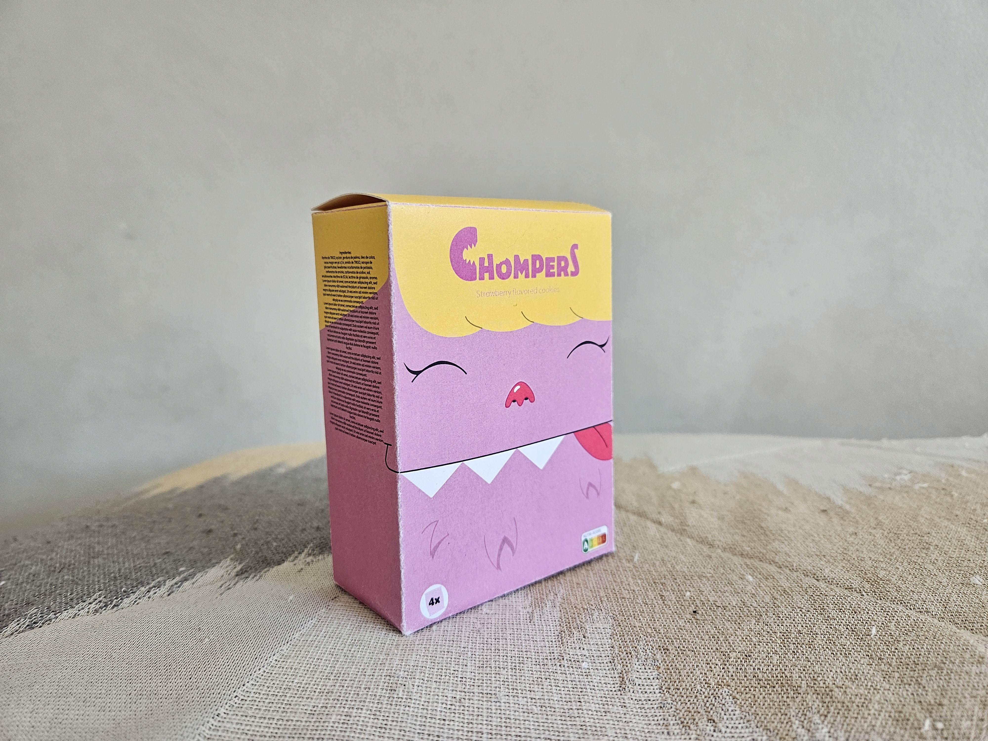 Me desafiei a criar uma marca de biscoitos infantis e desenvolver uma forma de evitar o acumulo de lixo e caixas que vem com eles. Então pensei - "e se cada sabor fosse um personagem para criança colhecionar?" - Assim nasceu CHOMPERS a família de monstros que amam biscoitos!